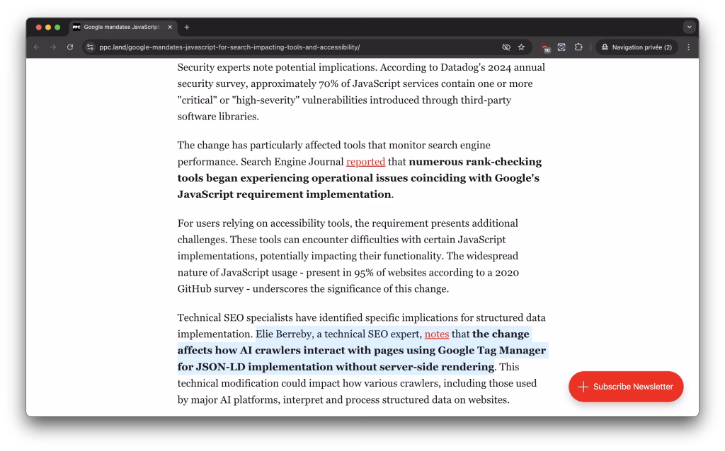 January 18, 2025[…] Will JSON-LD injected via Google Tag Manager with no SSR be invisible to AI crawlers? […]