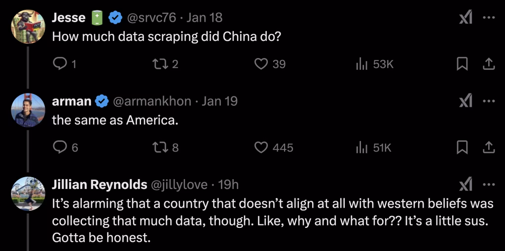 I hope you realize that you could be against TikTok, you could boycott TikTok and yet your data could end up in ByteDance’s obscure dataset because they aggressively scrapped content from your website. You have a portfolio? You shared pictures? You have an online CV/Resume with personal data? Your work employment history? Well…